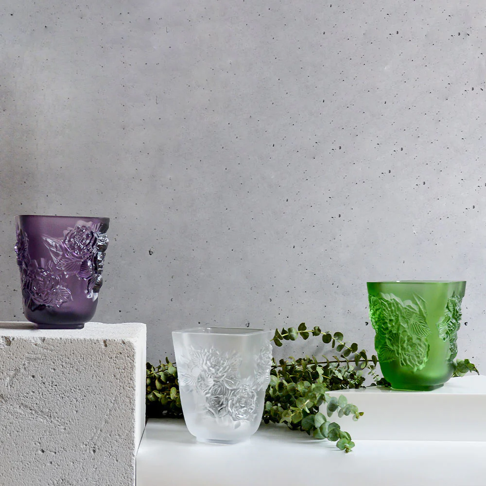 Альянс жесткости и деликатности, гармоничное сочетание строгих квадратных форм с изогнутыми линиями скульптурных мотивов — вазы и чаши Pivoines воплощают контраст минеральной силы и цветочного романтизма. Пион, являясь символом процветания, красоты и чести, особенно почитается в Китае, где его изображения встречаются повсеместно.